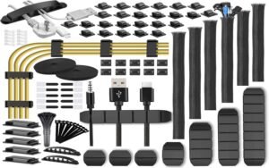 Description: Tangled cables are visual and mental distractions. A management kit organizes power and data lines neatly — reducing stress and creating usable surface area.