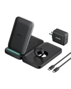 The Anker 3-in-1 wireless charging station offers a convenient way to charge multiple devices at once without tangled cables. It is designed to power your smartphone, smartwatch, and wireless earbuds simultaneously while ensuring fast and safe charging. Its compact and modern design fits perfectly on desks or bedside tables. This charging station is ideal for users with multiple devices who value organization and efficiency.